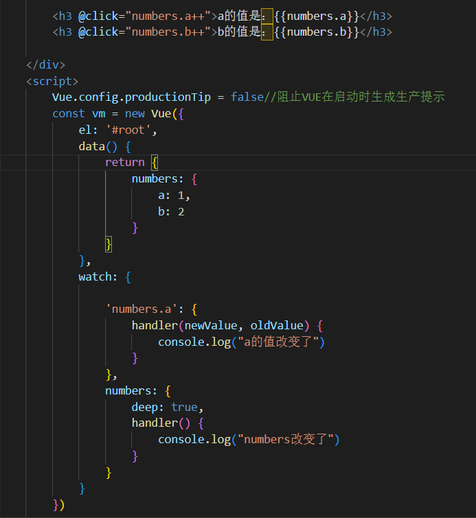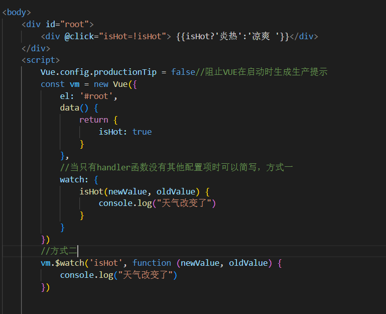 当监视属性中只用到handler函数而没有其他配置项时,可以简写,有两种简写方式,如下: