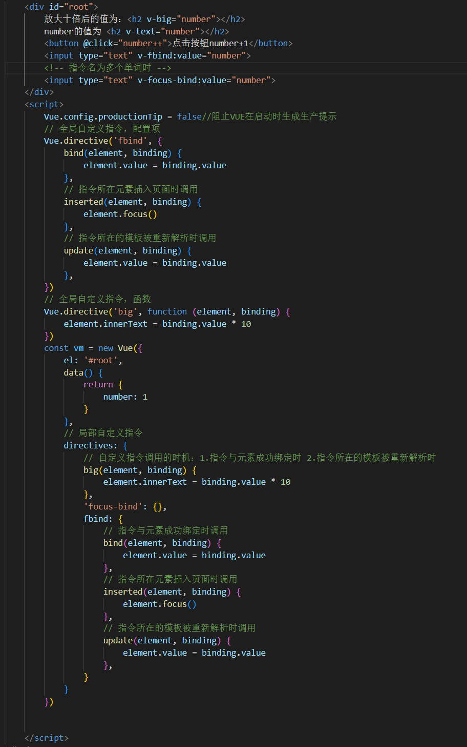 directives:{ 指令名:配置对象 } 或 directives:{ 指令名:回调函数 }